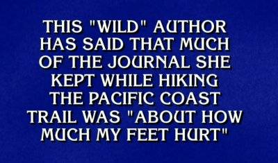 ($1200) This “Wild” author has said that much of the journal she kept while hiking the Pacific Coast Trail was “about how much my feet hurt” [Note: Thanks to Daybreak’s comment for pointing out an error on the name of the trail on Jeopardy!’s part. It should be the Pacific Crest Trail.)